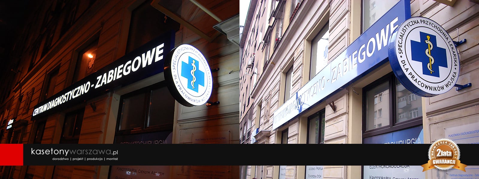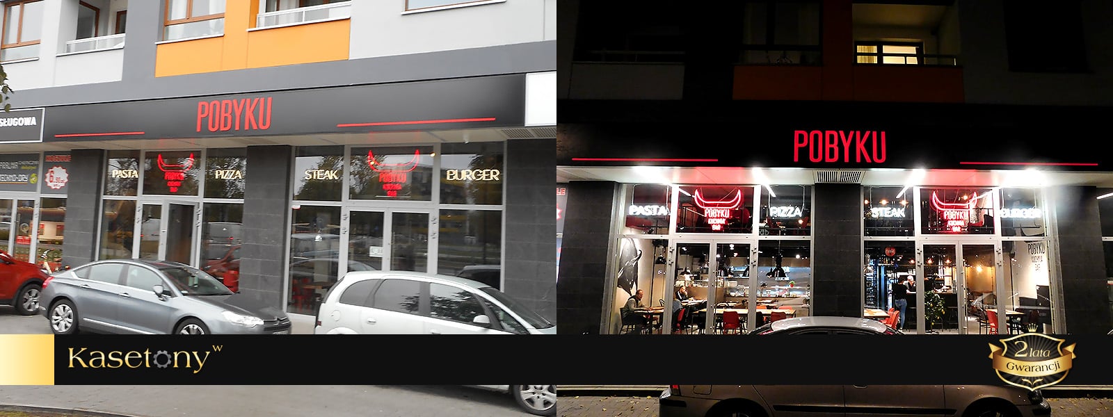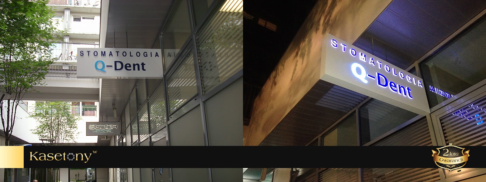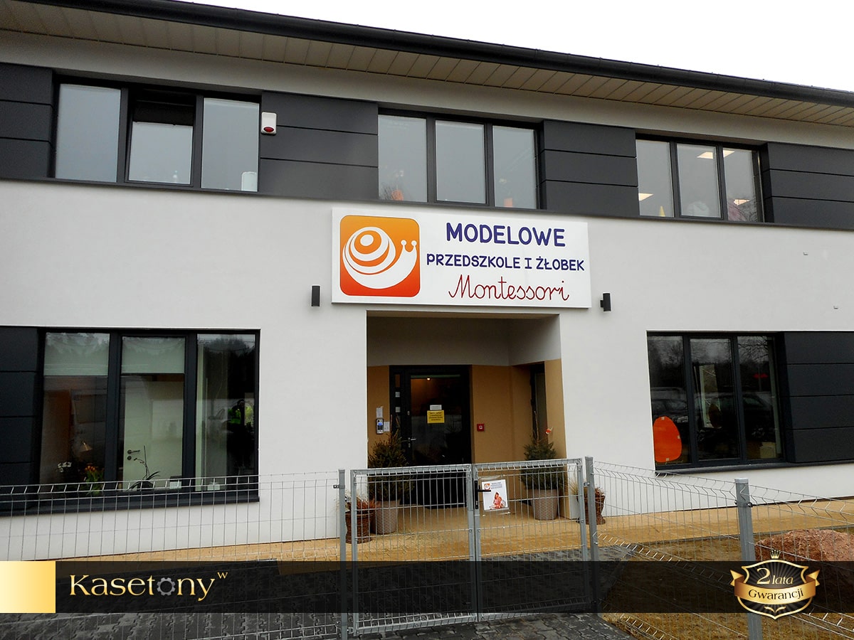 Dla najbardziej wymagających klientów, którzy cenią oryginalną i prestiżową reklamę proponujemy kasetony z kompozytów aluminium typu Dibond lub blach aluminiowych. Kompozyty to łatwe w obróbce, odporne na zginanie, idealnie gładkie i lekkie materiały. Boki i front kasetonu wykonane są w całości z jednego zagiętego arkusza kompozytu. We frontowej części płyt wycinana jest grafika za pomocą plotera CNC. Następnie od wewnątrz kasetonu przyklejana jest plexi z nałożoną grafiką. Grafiki, napisy, logotypy opcjonalnie mogą być wypukłe, co zapewnia dodatkowy efekt przestrzenności.
