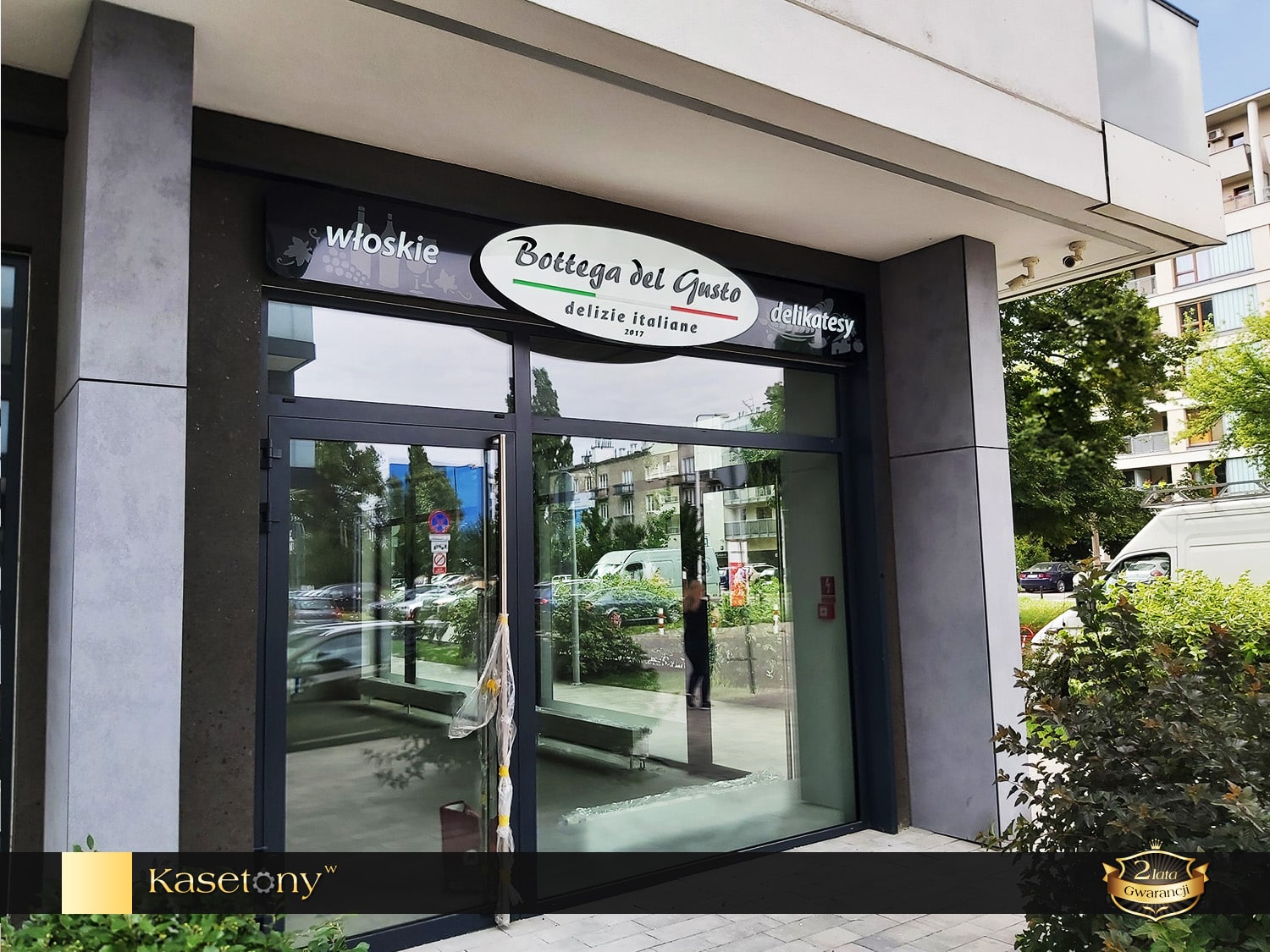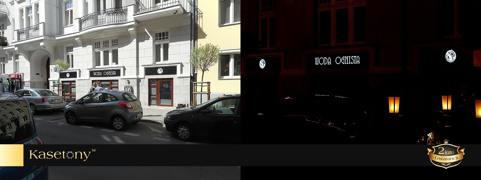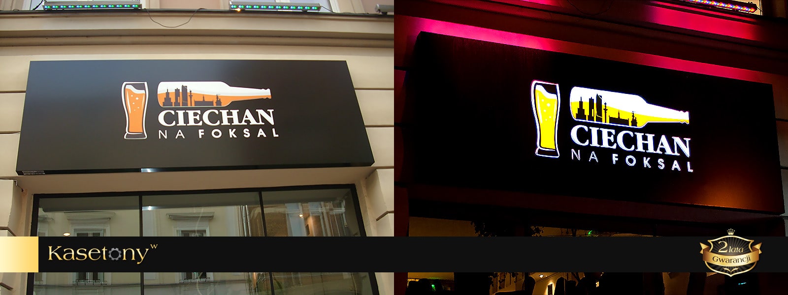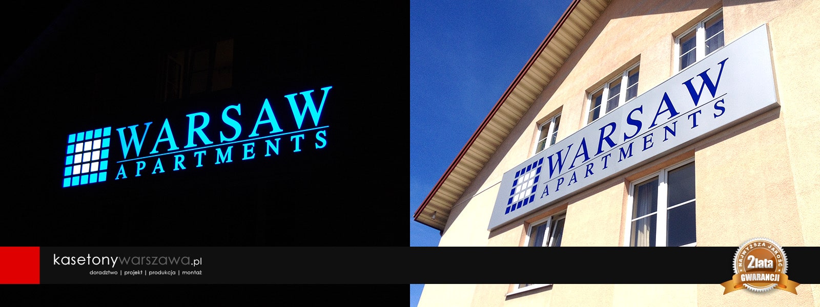 Dla najbardziej wymagających klientów, którzy cenią oryginalną i prestiżową reklamę proponujemy kasetony z kompozytów aluminium typu Dibond lub blach aluminiowych. Kompozyty to łatwe w obróbce, odporne na zginanie, idealnie gładkie i lekkie materiały. Boki i front kasetonu wykonane są w całości z jednego zagiętego arkusza kompozytu. We frontowej części płyt wycinana jest grafika za pomocą plotera CNC. Następnie od wewnątrz kasetonu przyklejana jest plexi z nałożoną grafiką. Grafiki, napisy, logotypy opcjonalnie mogą być wypukłe, co zapewnia dodatkowy efekt przestrzenności.